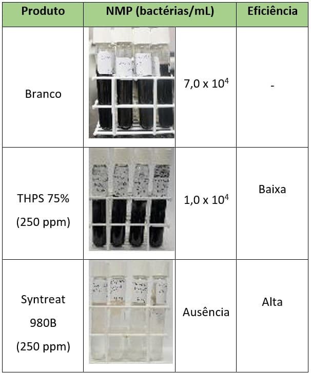 The test performed with SYNTREAT OG 980B was conclusive regarding MIC (minimum inhibitory concentration), as it showed greater efficiency at lower dosages than the current treatment used by the Unit.